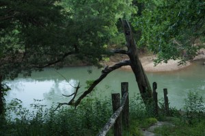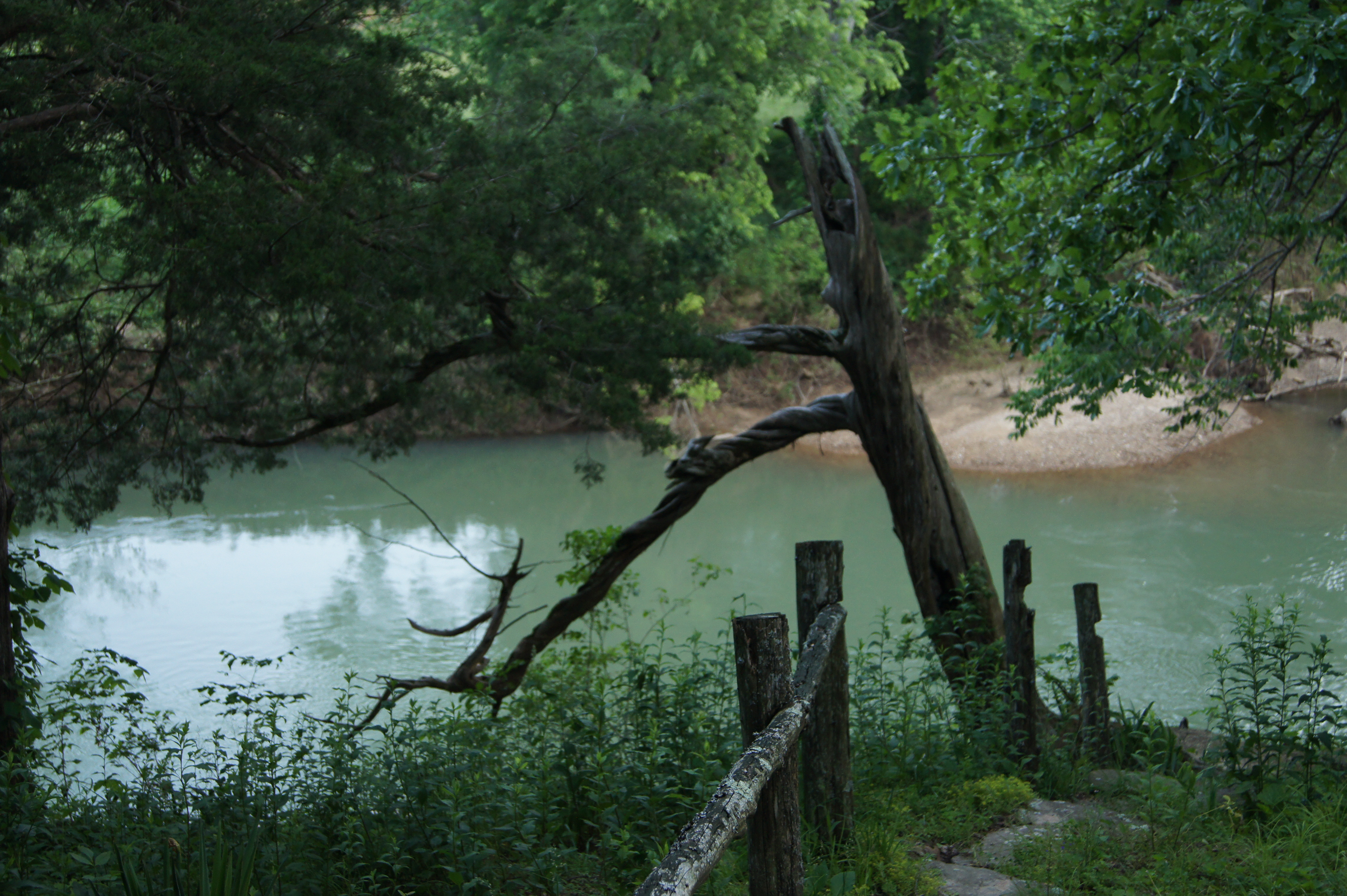 Wind and water change, depending on the season of my visits. It’s late May, the first hot and sunny days after weeks of thunderstorms, tornadoes, hail, and floods. At one point, the river rose forty feet, and it is still much higher than I remember seeing it this time of year. The floods changed the river banks. Trees came loose and fell into the water. Some rest near their old spot, others were carried away. The water swatted new lines and crevices into the banks, dragged off mud and gravel, and deposited sand in curved slopes. The sound of the rushing water seems to have changed: It is busy, hurtling, louder than usual. The wind has shifted to its summer pace and softness. The leaves are big and turning summer-dark. They resist the breeze and there’s a swoosh, a swelling, sometimes even a majesty to the wind.