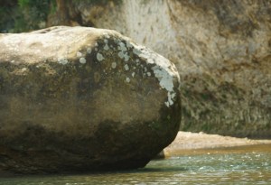 Here is a girls’ boarding school in ruins, its sturdy French design holding out against the seasons on an Ozarks hilltop. Miles east, set back from the road in a wide valley I’ve never been to before, a boxy church suddenly comes into view. I’ve seen the building in photographs and it always seemed half-mythical to me, but here it is. Now, as I am standing close to it, the stories become overwhelming, and I escape to the adjacent cemetery. And a bluff overhang on the Buffalo brings out even older stories. There are no human-built structures here, but the slow work of the elements has created a shelter that has been attracting people forever. The water running over the rocks nearby seems to hold their quiet voices.