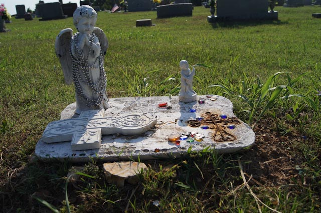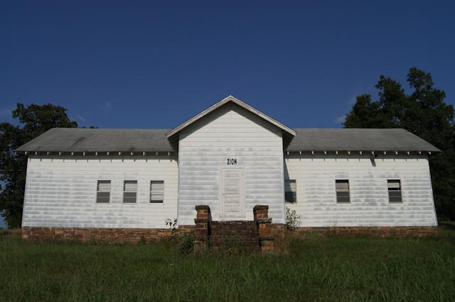 On the way home I drift over to the east side of Fayetteville and stop at Zion Methodist Church. Someone likes things clean and orderly here: The 1850 church has been spruced up with vinyl siding; the cemetery has a shiny black fence, a long list of rules attached to the fence, and not a single tree, which is unusual for such an old graveyard. Still, there are a few signs of individuality: