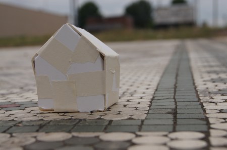 Much randomness led to this photo. The house was put together in the Tinkering Studio at the Arts & Science Center in Pine Bluff. I was in town for the opening of the Small Works on Paper exhibition, a traveling show organized by the Arkansas Arts Council. I have a photo in this show. I love the idea that it’s going to places in Arkansas I’ve never been to myself and was happy to catch up with it in Pine Bluff. The downtown area is desolate and speaks (whispers) of much better times; there are some surprisingly large and stately department stores and apartment buildings, now abandoned. On a street corner, I found this beautiful, intricate tile floor. Perhaps it was part of a butcher shop or a soda fountain–the building around it was gone. Two broken houses, then: my matboard-and-tape miniature, and the one whose only trace were green, white, and black tiles.