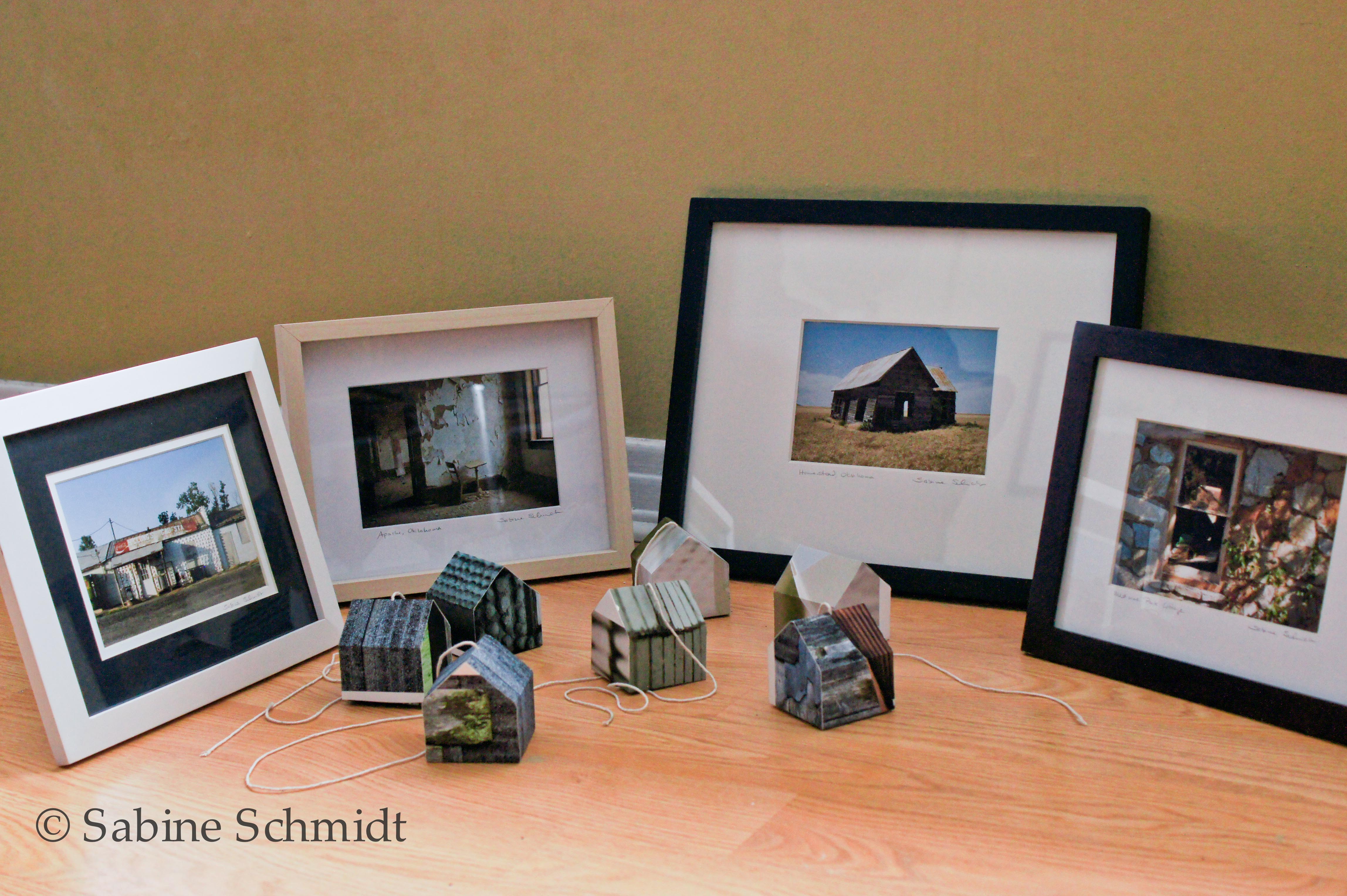 A selection of framed prints ($90-$120) and paper houses ($10 each).